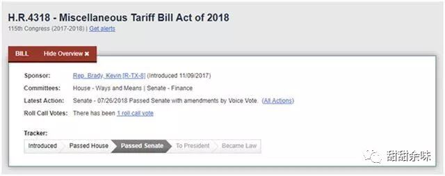1.從法案本身來看,據美國國會官網顯示,其最早提交到眾議院的時間是2017年9月11日(對應法案流程的第一步“Introduced”);下一節(jié)點是2018年1月16日,應該也就是眾議院進行討論并通過的日期,此后就是1月17日,從這一天起,處理者由眾議院變成了參議院(對應流程的第二步“Passed House”);再下一個節(jié)點就是2018年7月26日了。