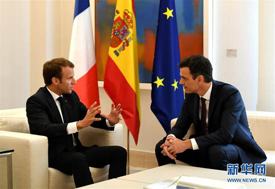 法國總統(tǒng)馬克龍7月26日在馬德里(圖左)與西班牙首相桑切斯舉行會(huì)談