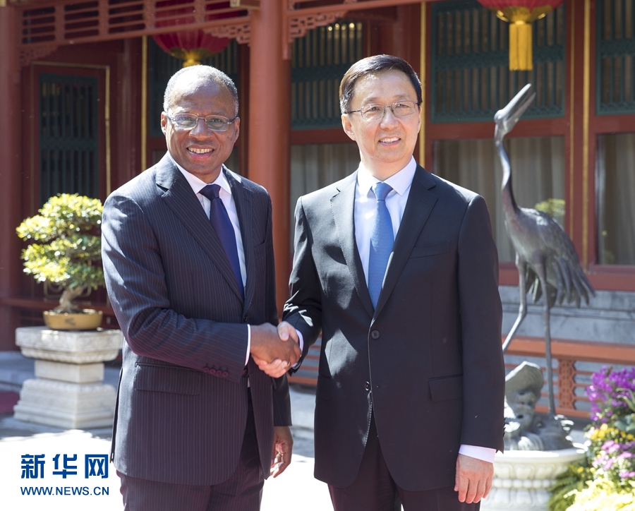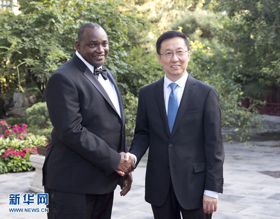 9月6日,中共中央政治局常委、國(guó)務(wù)院副總理韓正在北京釣魚(yú)臺(tái)國(guó)賓館會(huì)見(jiàn)佛得角總理席爾瓦。 新華社記者 王曄 攝