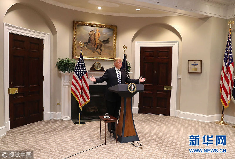 美國總統(tǒng)特朗普在白宮就移民和邊境安全問題發(fā)表講話