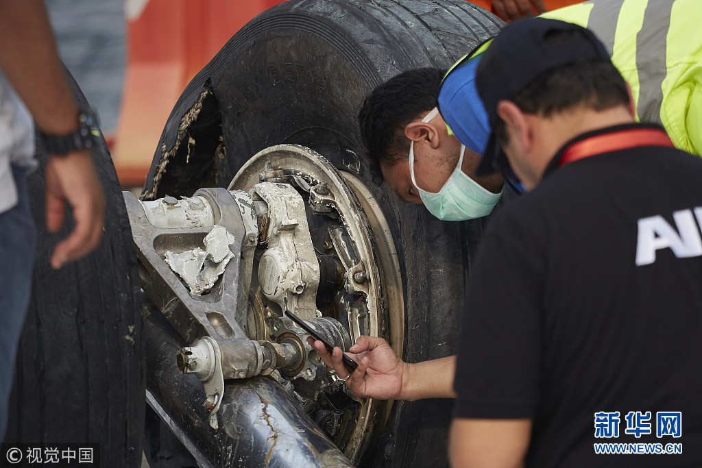 11月3日,印尼雅加達,印尼獅航客機墜海搜救進入第六天,印尼失事客機部分殘骸陸續(xù)打撈上岸。印尼國家搜救局2日表示,目前獅航失事客機的起落架、輪胎都已經(jīng)打撈上岸。同時,遇難者遺體身份確認工作也在進行中。(圖片來源:視覺中國)