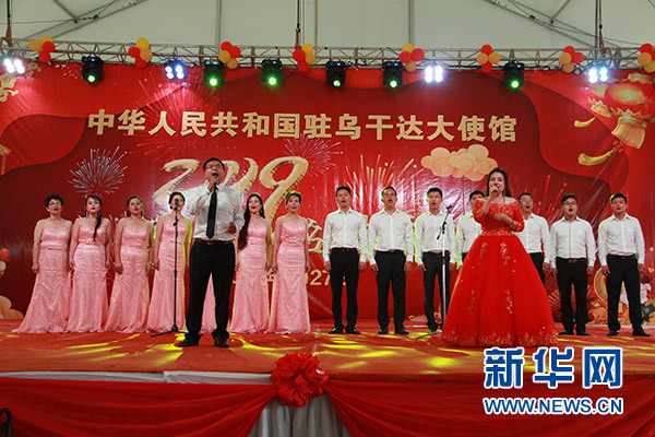 1月27日,在烏干達坎帕拉,人們在中國駐烏干達使館春節(jié)招待會上表演。 新華社記者 張改萍 攝