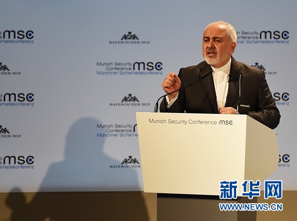 2月17日,在德國(guó)慕尼黑,伊朗外交部長(zhǎng)扎里夫在慕尼黑安全會(huì)議上發(fā)言。 新華社記者 逯陽(yáng) 攝