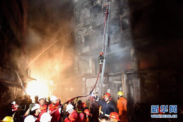 達(dá)卡市消防部門從20日夜間開始滅火工作到21日。消防部門官員馬赫福茲·里文對(duì)新華社記者表示,目前仍有37支消防隊(duì)在現(xiàn)場(chǎng)滅火。