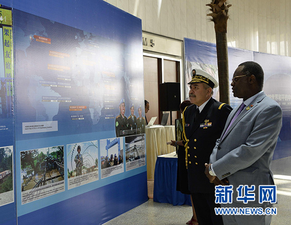新華社亞的斯亞貝巴3月18日電(記者朱鴻亮 王守寶)在象征中非團(tuán)結(jié)友誼和高水平合作的非盟總部大樓,以“和平藍(lán)”為主色調(diào)的17塊展板形成了一條“中國(guó)走廊”,與大廳內(nèi)充滿(mǎn)非洲風(fēng)情的棕櫚樹(shù)造型交相輝映,成為一道亮麗風(fēng)景——當(dāng)?shù)貢r(shí)間18日上午11時(shí)30分,“維護(hù)世界和平的中國(guó)軍隊(duì)”主題展覽在埃塞俄比亞亞的斯亞貝巴非盟總部開(kāi)幕。