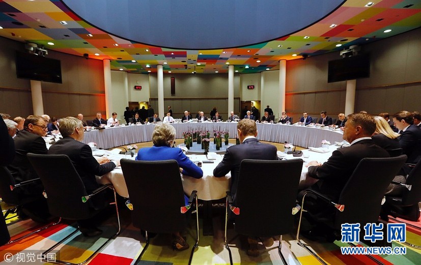 當?shù)貢r間2019年4月10日,比利時布魯塞爾,歐盟領導人會議召開,討論英國“脫歐”議題。據(jù)路透社消息,歐盟各成員國達成一致,允許英國延期“脫歐”至10月底,6月份歐盟還將對此決定再次評估。歐洲理事會主席圖斯克表示,歐盟各成員國達成一致,允許英國延期“脫歐”,現(xiàn)在他將與英國首相特雷莎·梅舉行會談,確定英國是否接受這一提議。(圖片來源:視覺中國)