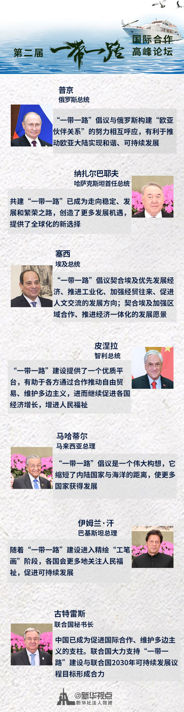 “我們要秉持共商共建共享原則,倡導(dǎo)多邊主義,大家的事大家商量著辦”“我們要堅(jiān)持開放、綠色、廉潔理念,不搞封閉排他的小圈子”“我們要努力實(shí)現(xiàn)高標(biāo)準(zhǔn)、惠民生、可持續(xù)目標(biāo),引入各方普遍支持的規(guī)則標(biāo)準(zhǔn)”……本屆高峰論壇,習(xí)主席再次為共建“一帶一路”指明了方向。