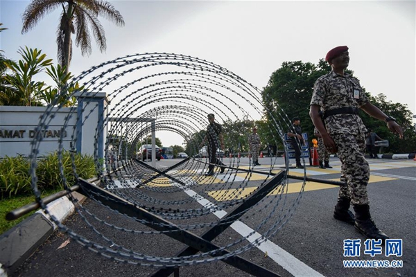 5月3日,在馬來西亞雪蘭莪州的加影,安保人員在監(jiān)獄外警戒。新華社發(fā)(張紋綜 攝)