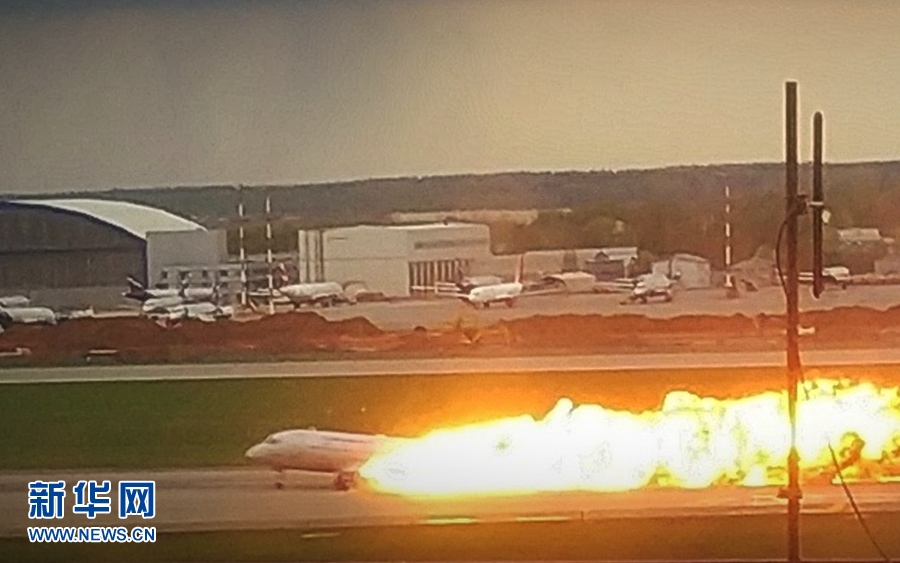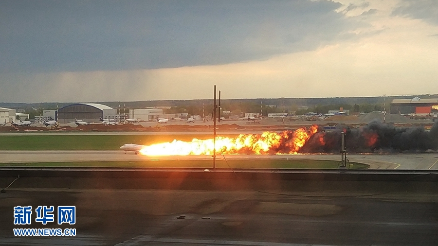 5月5日,一架客機(jī)在俄羅斯首都莫斯科謝列梅捷沃機(jī)場(chǎng)迫降。新華社發(fā)(謝爾蓋攝)