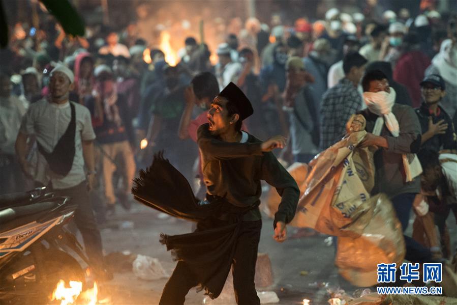 這是5月22日在印度尼西亞首都雅加達(dá)拍攝的騷亂現(xiàn)場。新華社發(fā)(祖卡南 攝)