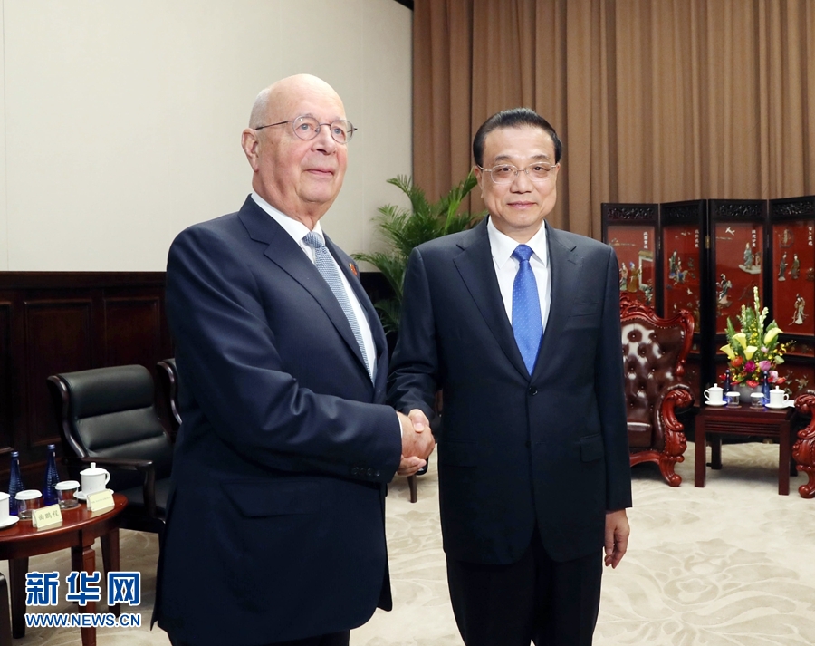 7月1日,國務院總理李克強在大連會見世界經濟論壇主席施瓦布。 新華社記者 劉衛(wèi)兵 攝