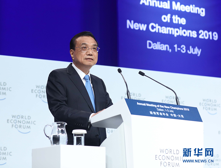 7月2日,國務(wù)院總理李克強(qiáng)在大連出席2019年夏季達(dá)沃斯論壇開幕式并發(fā)表特別致辭。 新華社記者 劉衛(wèi)兵 攝