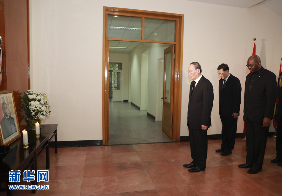 王岐山在穆加貝遺像前肅立默哀,并在吊唁簿上題詞,代表中國政府和人民對穆加貝的逝世表示最深切的哀悼,向津巴布韋政府和人民以及穆加貝的親屬表示最誠摯的慰問。王岐山表示,穆加貝是津巴布韋和非洲杰出政治家和民族解放運(yùn)動(dòng)領(lǐng)導(dǎo)人,為推動(dòng)中津、中非友好作出了卓越貢獻(xiàn)。中方珍視中津傳統(tǒng)友誼,愿同津巴布韋政府和人民一道,推動(dòng)中津全面戰(zhàn)略合作伙伴關(guān)系不斷向前發(fā)展。相信在姆南加古瓦總統(tǒng)領(lǐng)導(dǎo)下,津巴布韋人民一定會化悲痛為力量,在實(shí)現(xiàn)國家穩(wěn)定和建設(shè)發(fā)展道路上不斷取得新的更大成就。