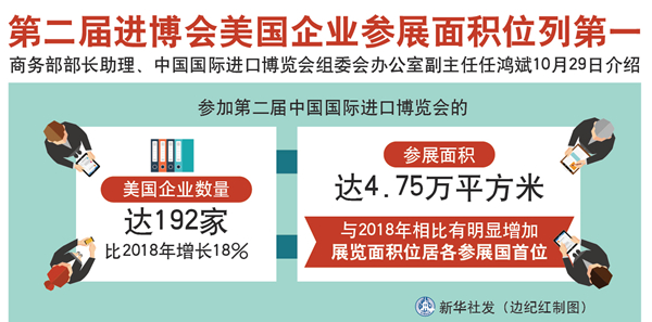 新華社北京10月29日電(記者陳煒偉、于佳欣)商務(wù)部部長助理、中國國際進(jìn)口博覽會組委會辦公室副主任任鴻斌29日介紹,參加第二屆中國國際進(jìn)口博覽會的美國企業(yè)數(shù)量達(dá)192家,比去年增長18%;參展面積達(dá)4.75萬平方米,與去年相比有明顯增加,展覽面積位居各參展國首位。