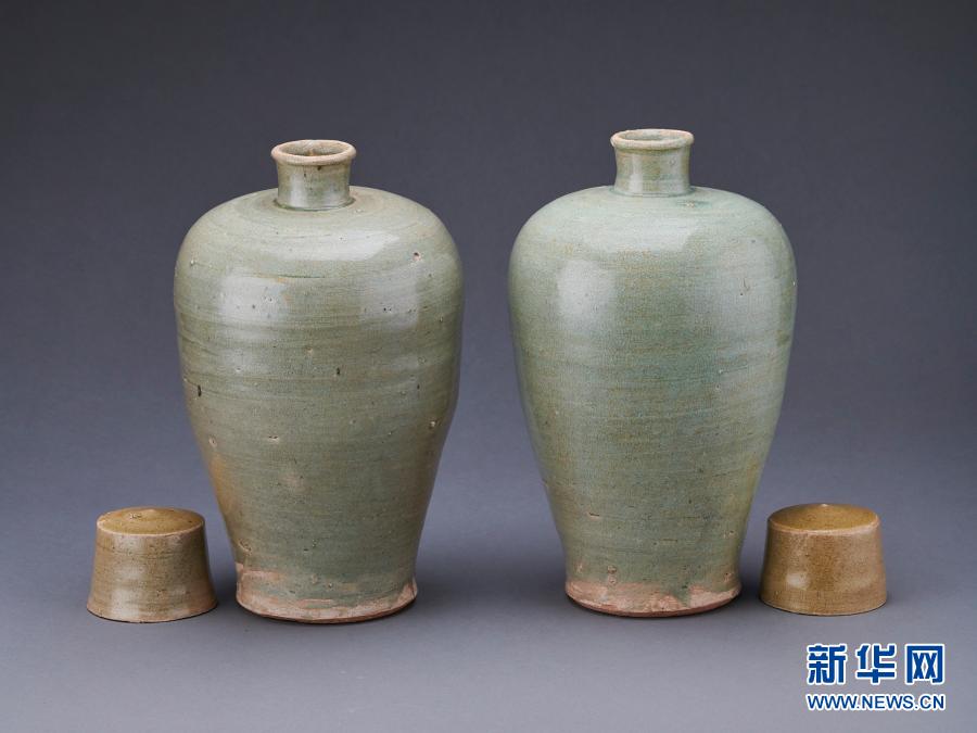 這是從英國回歸的國家二級(jí)文物——明代青瓷帶蓋梅瓶(資料照片)。新華社發(fā)