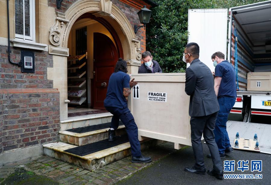 10月16日,在英國倫敦,工作人員協(xié)助中國駐英國大使館文化處清點(diǎn)文物。新華社記者 韓巖 攝