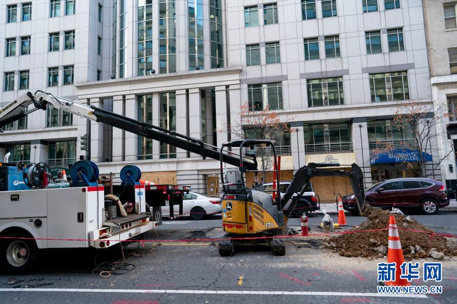 這是11月19日在美國華盛頓拍攝的一處正在施工的道路。新華社記者 劉杰 攝