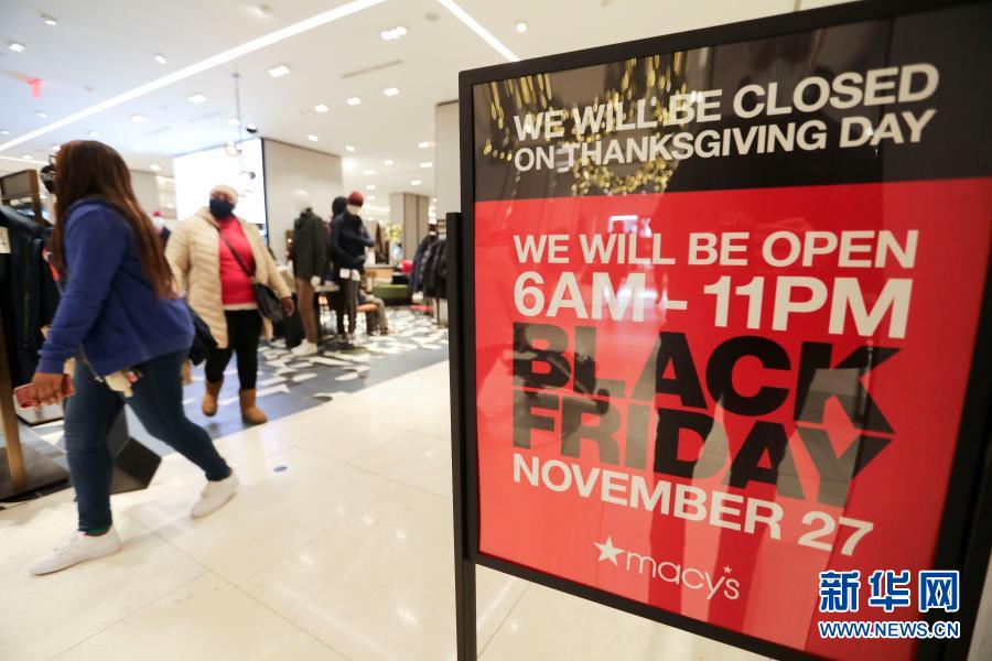 受新冠疫情影響,今年美國“黑色星期五”購物促銷日前往商店購物的人數(shù)較往年減少。