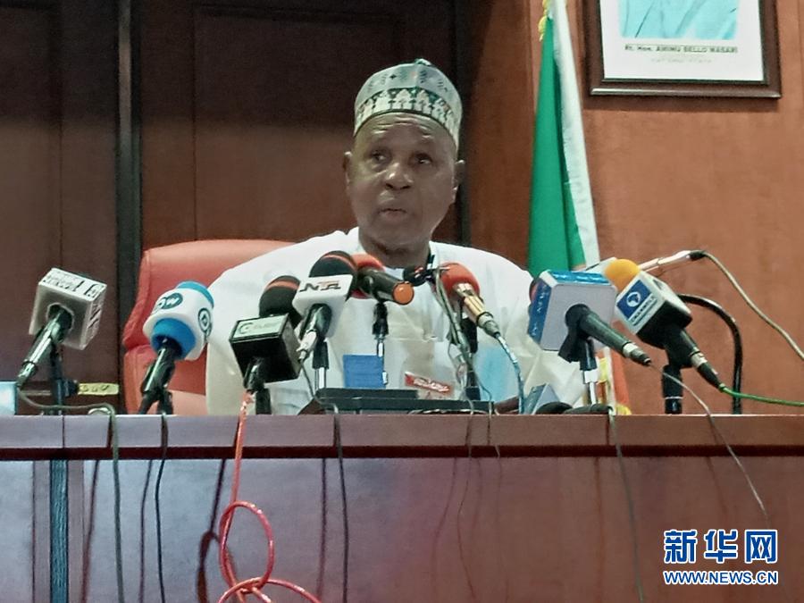 12月18日,在尼日利亞卡齊納州卡齊納市,卡齊納州州長(zhǎng)阿米努·馬薩里出席獲釋學(xué)生的迎接儀式時(shí)講話(手機(jī)照片)。新華社發(fā)(奧瓦勒·易卜拉欣攝)
