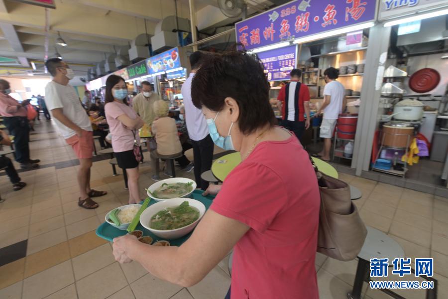 12月17日,食客在新加坡竹腳小販中心購買食品。