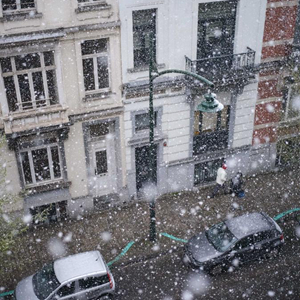 這是4月5日在比利時(shí)布魯塞爾拍攝的雪景。